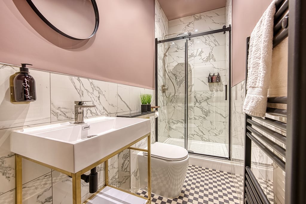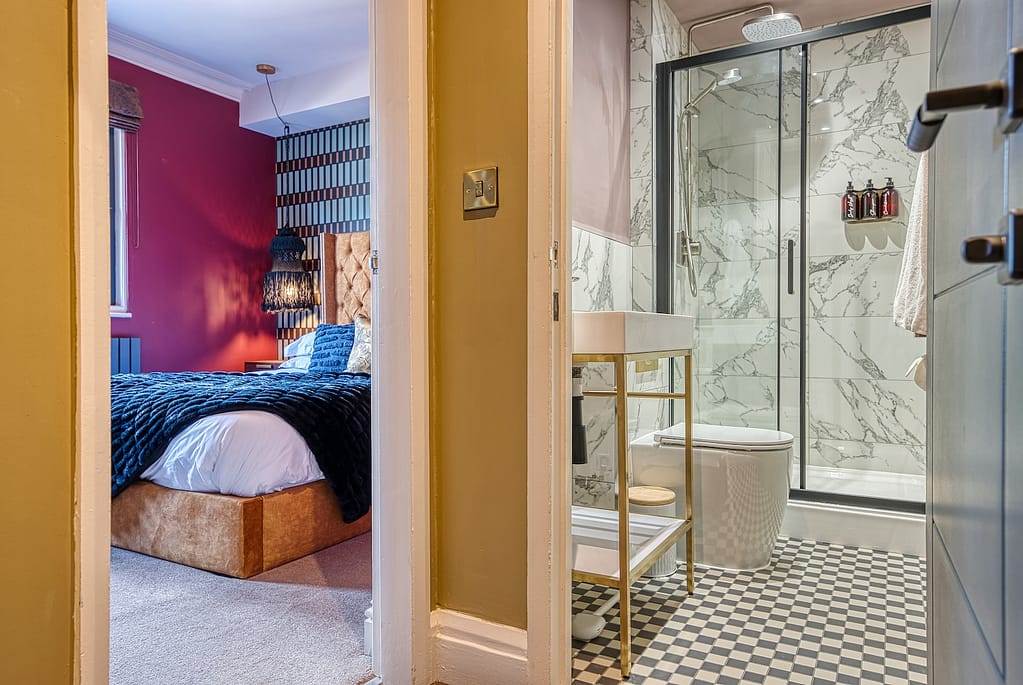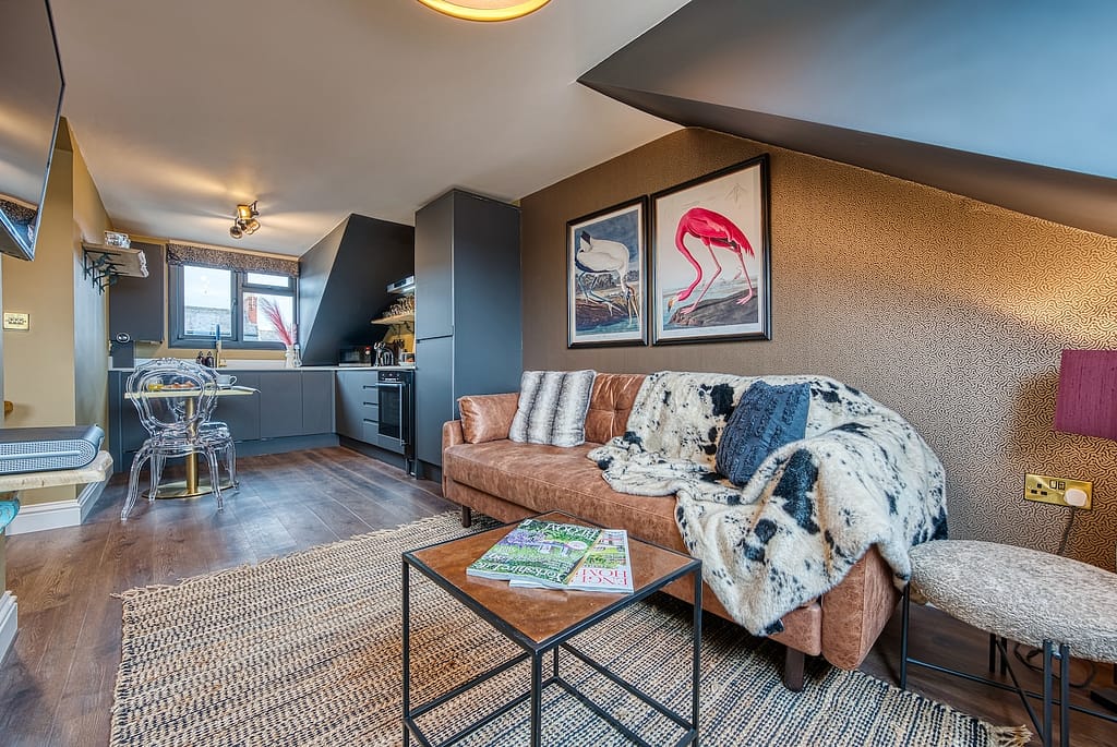 The Suites are furnished with sumptuous velvet beds, gleaming bathrooms and spacious lounges. The kitchens are well equipped with Bosch appliances such as oven, microwave, dishwasher and induction hob, as well as all the equipment needed for cooking and eating in. Each lounge features large Smart TV’s (equipped with Netflix and bluetooth) and high end Swyft sofa beds that fold out to amazing double beds, with the same fabulous cotton linens as the master bedrooms.