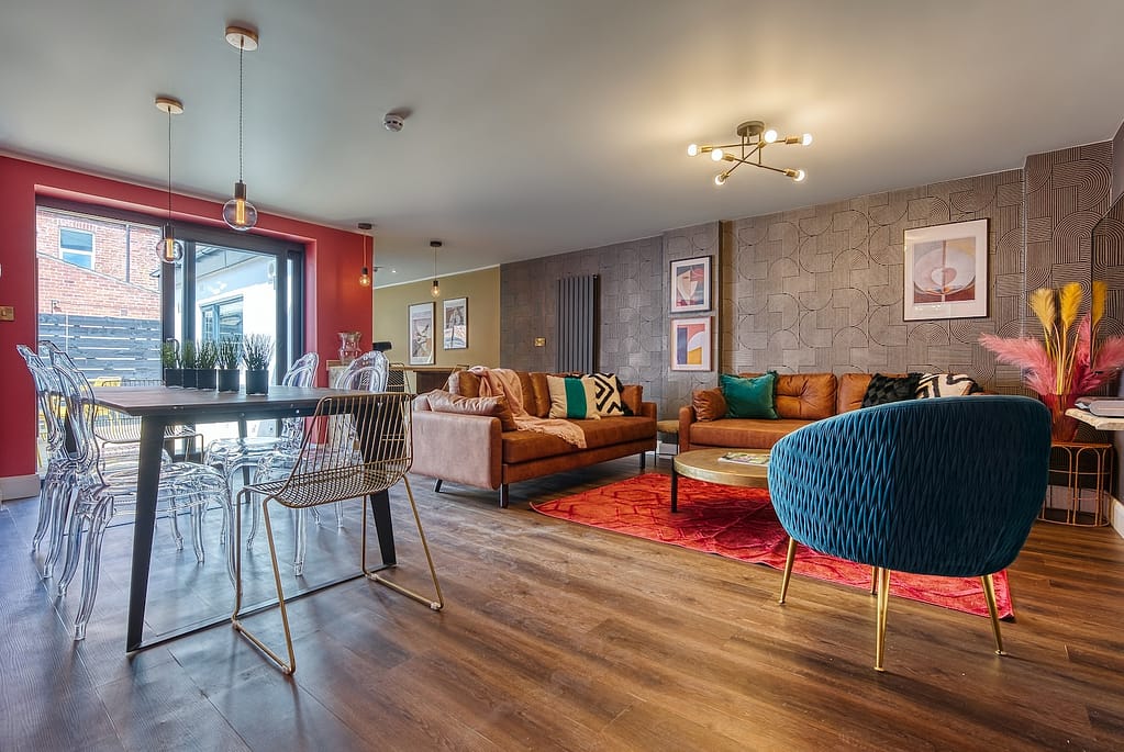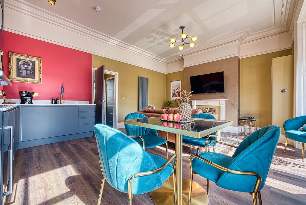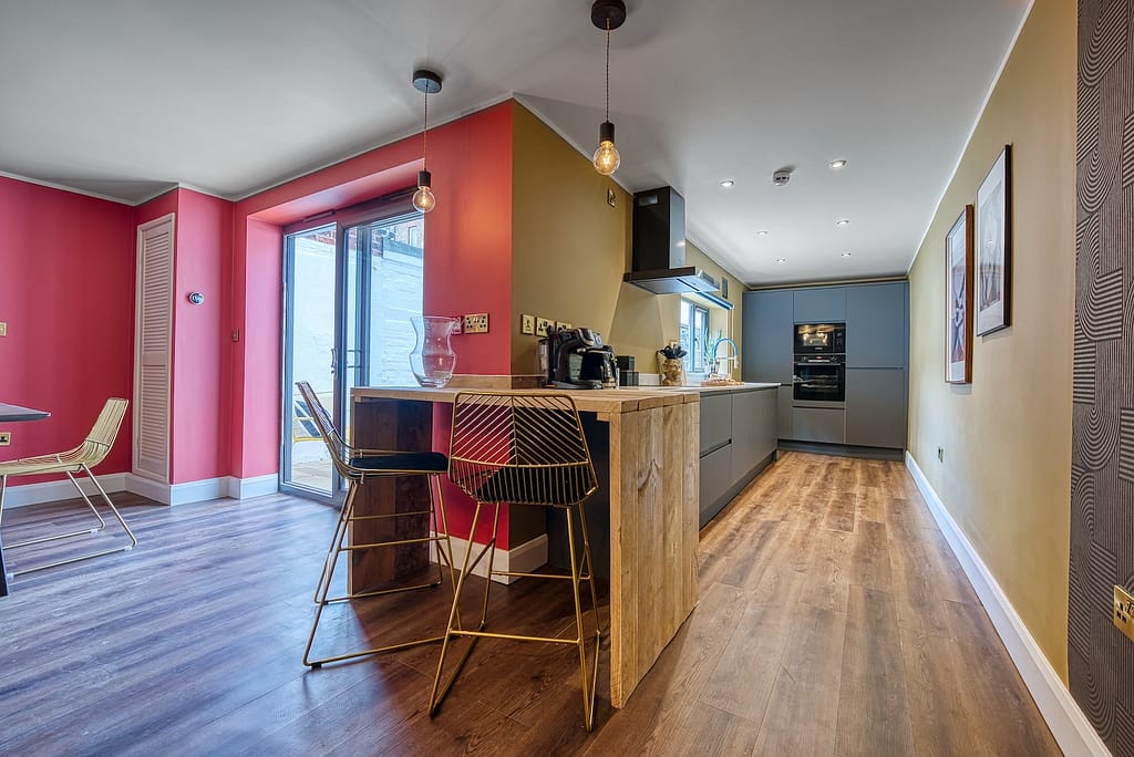 A stunning large Victorian four-bedroomed house in the picturesque town of Skipton, a market town with many canals and cobbled streets, with the beautiful Yorkshire Dales a 10 minute drive away. The house boasts a furnished outdoor flagstone patio, perfect for a quiet drink or a BBQ. Inside, you’ll find a stunning galley kitchen with quartz marble tops providing all the amenities needed to prepare a fabulous dinner. It also features a large dining room with a sofa to relax and chat after supper. Located close to the centre of Skipton, you’ll have easy access to a wide range of shops, bars, and restaurants along with grocery stores.